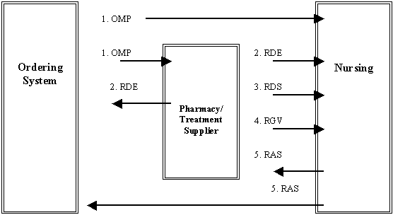 Sections 4.13 to 4.16 'Pharmacy / Treatment' includes all pharmacy and treatment related order messages. These sections additionally include triggers related to the dispensing, giving and administration of orders. In the development of the treatment order transaction set, the focus has been on medication treatments, but the same transaction set works well for total parenteral nutrition (TPN). There is hope that it is also sufficient for other kinds of treatment orders, such as those performed by the nursing service. But it has not yet been exercised in that context and may well need further development.