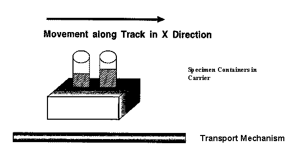 Note: c) Specimens could move in the Y dimension away from a transport system to be placed onto an instrument for analysis (see Figure 13-3). The sample probe would move in the Y dimension as it moves out from the instrument or specimen processing and handling device to a position directly over the specimen container.