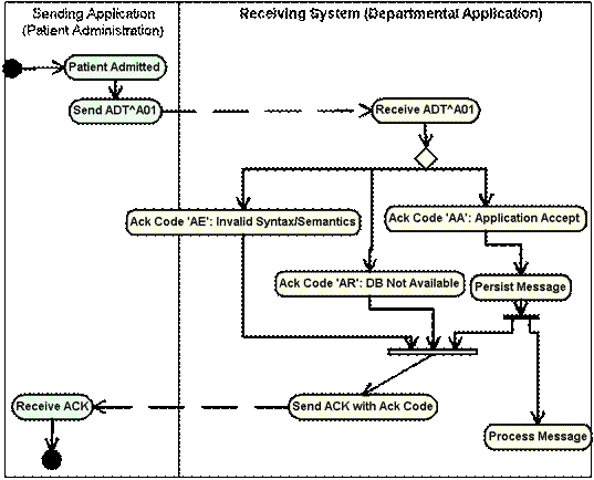 Definition: The Interaction Model illustrates the sequence of trigger events and resulting message flows between 2 or more systems. It may be in literal or graphical form. Graphical form should be a UML activity diagram. Example activity diagrams are shown here for the original and enhanced acknowledgement modes.
