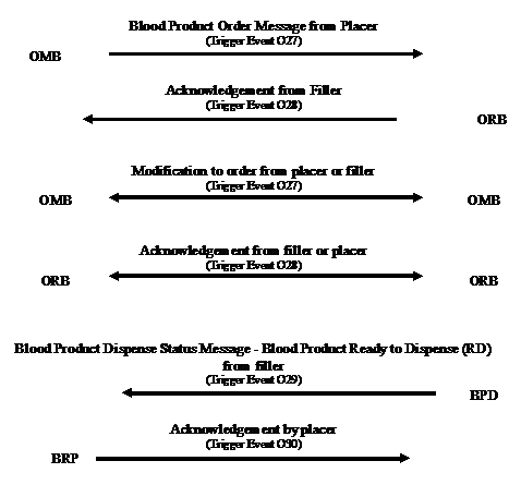 Sections 4.20 to 4.22 "Transfusion Service (Blood Bank)" includes triggers and segments specific to transfusion service messages.