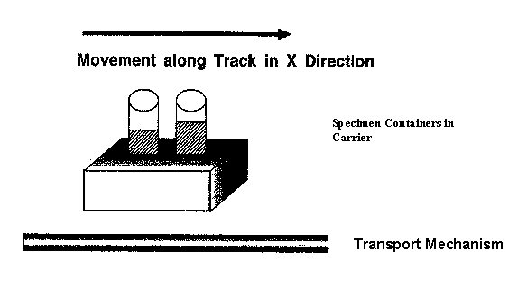 Note: c) Specimens could move in the Y dimension away from a transport system to be placed onto an instrument for analysis (see Figure 13-3). The sample probe would move in the Y dimension as it moves out from the instrument or specimen processing and handling device to a position directly over the specimen container.