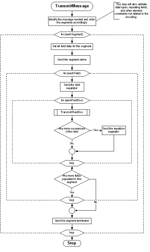 the HL7 encoding rules for converting an abstract message into a string of characters that comprises an actual message.