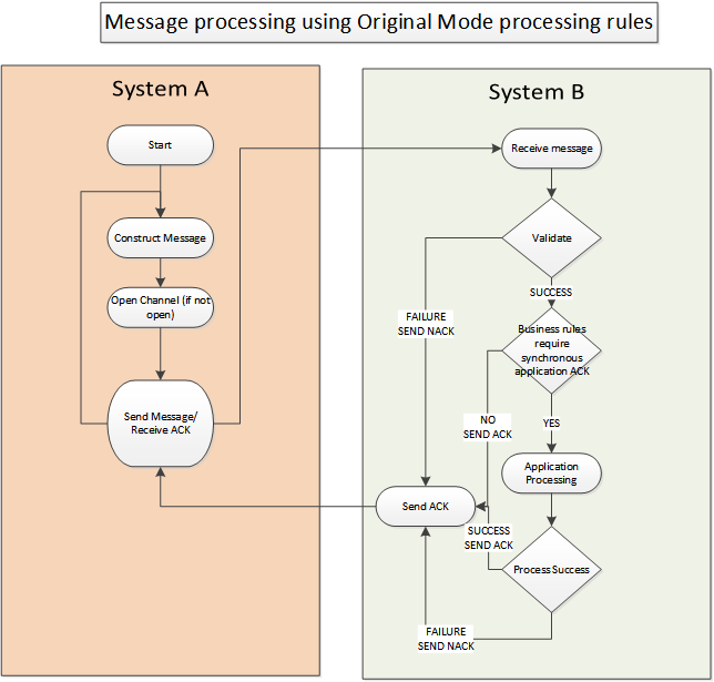 Note: Original mode acknowledgment was replaced by enhanced mode acknowledgment in version 2.2. Implementers SHALL always value MSH-15 and MSH-16 Original mode allows the sender to transmit and receive on a single communication channel.